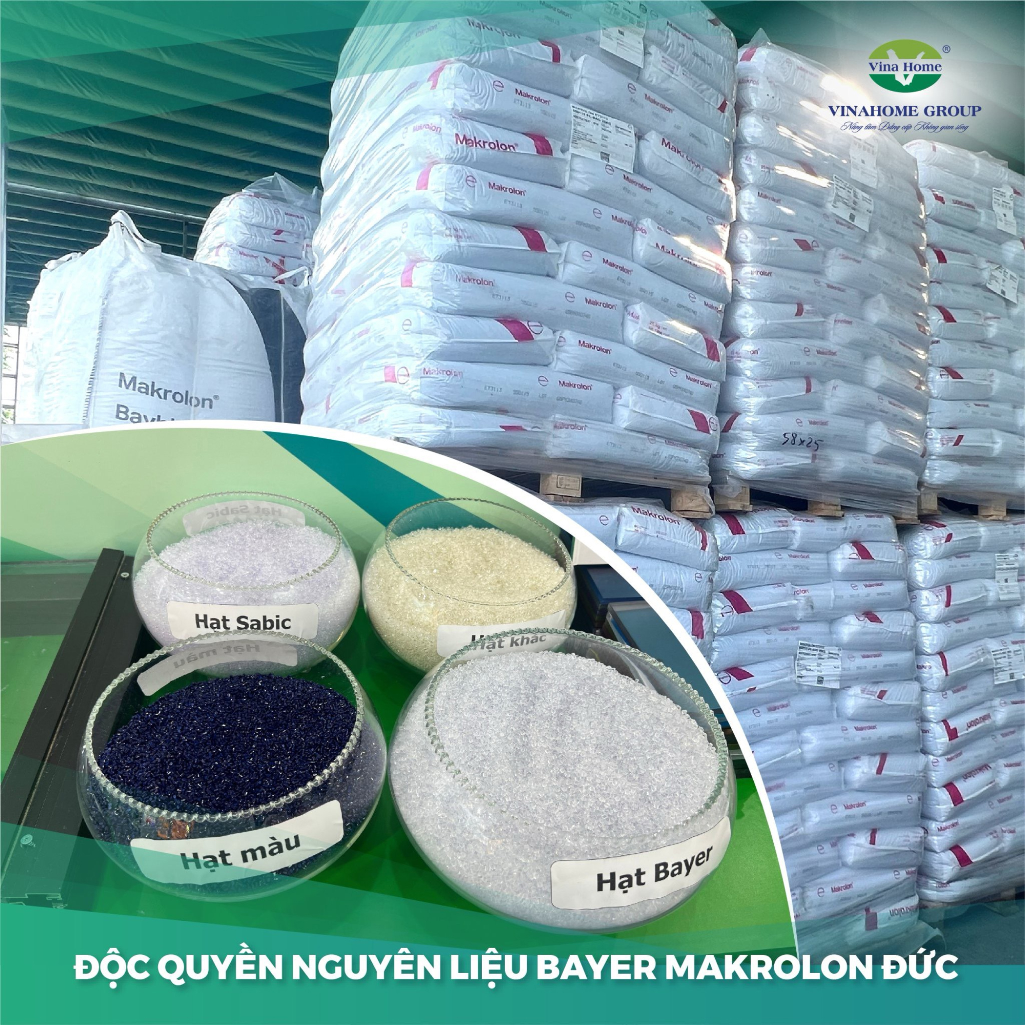 Vinahome là đơn vị độc quyền nguyên liệu hạt nhựa Bayer Đức