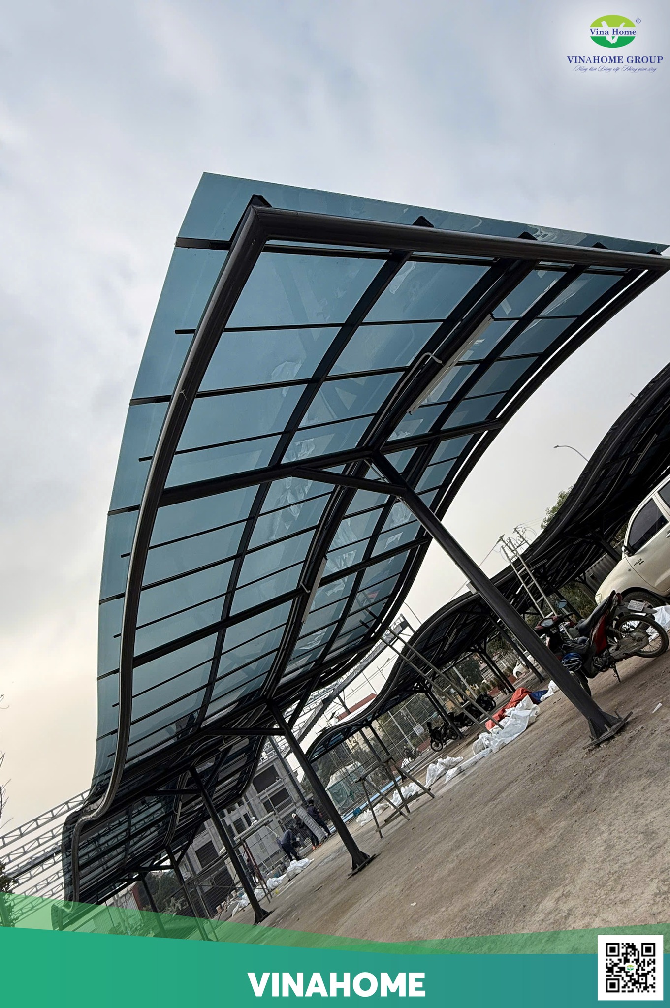 Mái nhà xe Công An quận Hà Đông