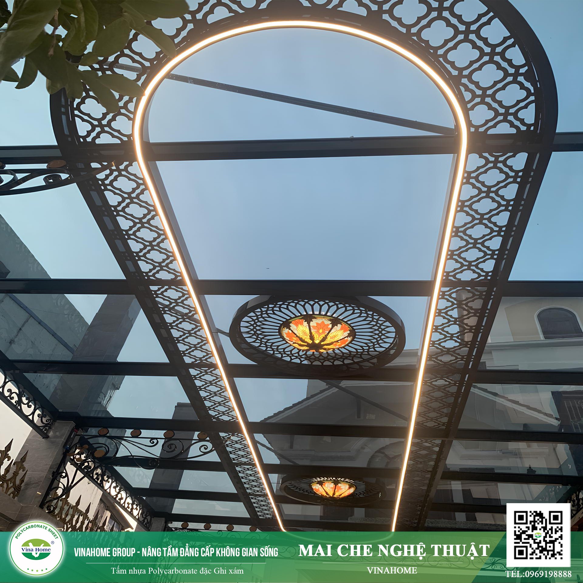 Mái sảnh hiên tấm nhựa thông minh màu ghi xám