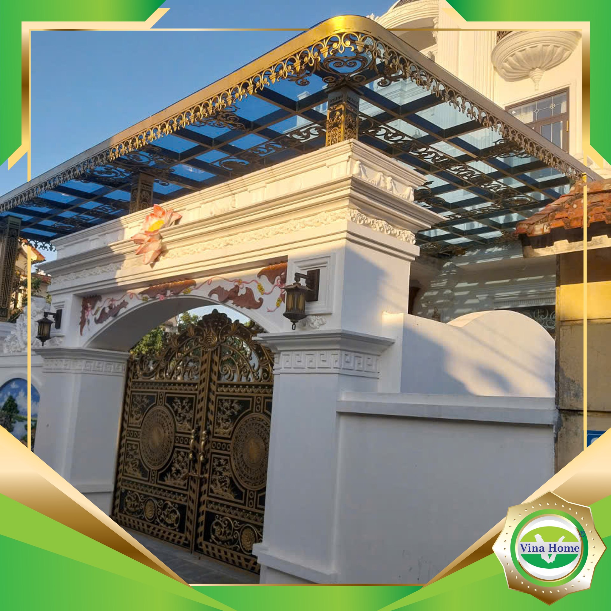 Mái sảnh hiên tấm nhựa thông minh màu ghi xám