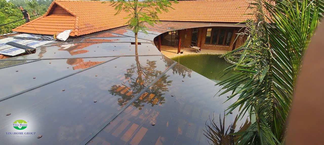 Đặc biệt, khi sử dụng các tông màu tán xạ nhiệt như nâu trà hay xám khói, vật liệu này có thể giúp hạ nhiệt độ không gian bên dưới thấp hơn môi trường bên ngoài từ 3°C - 5°C, mang lại cảm giác dịu mát và thư thái ngay cả trong những ngày hè oi ả. Việc duy trì được một không gian nghỉ dưỡng mát mẻ tự nhiên không chỉ giúp nâng cao trải nghiệm thư giãn của khách hàng mà còn giúp chủ đầu tư tiết kiệm đáng kể chi phí điện năng.