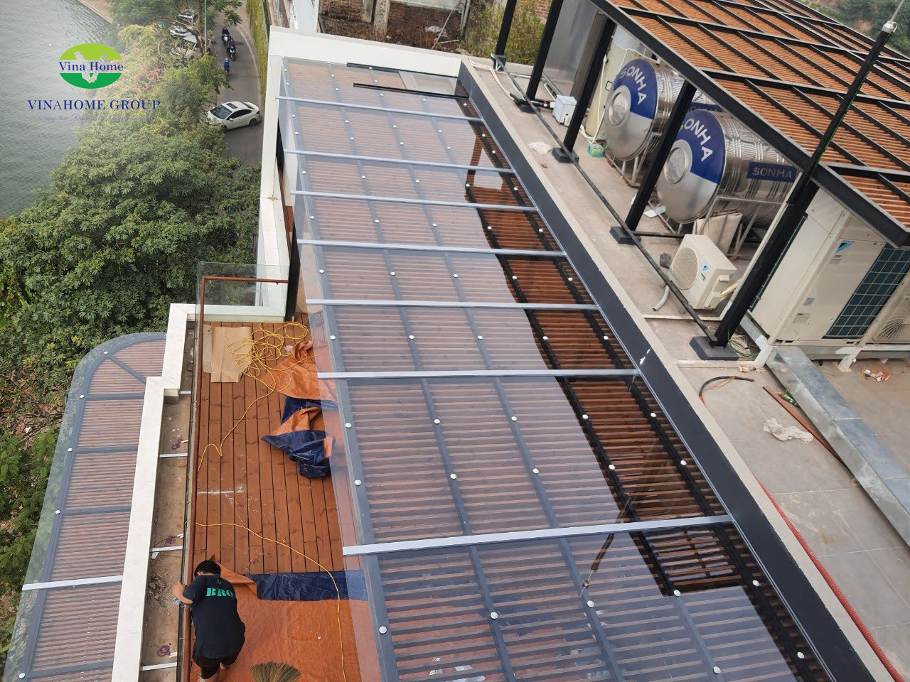 Lắp mái che nhựa lấy sáng poly cho công trình homestay khách hàng có thể yên tâm vật liệu có độ bền hàng chục năm