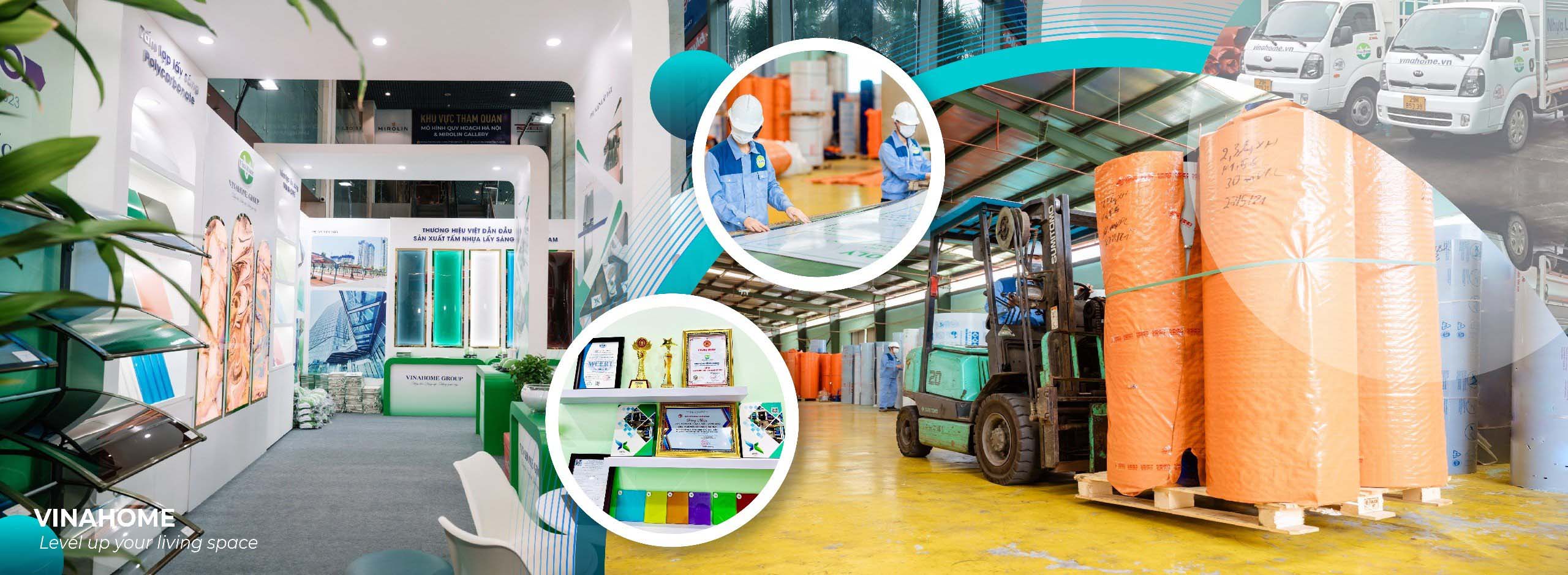 Tập đoàn vinahome đã có 3 nhà máy sản xuất sản phẩm Polycarbonate với 6 dây chuyền sản xuất và 1 nhà máy tạo nguyên liệu hạt thô, Vinahome đã và đang phát triển nhanh hệ thống phân phối bán lẻ trên các tỉnh miền bắc